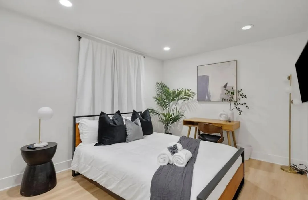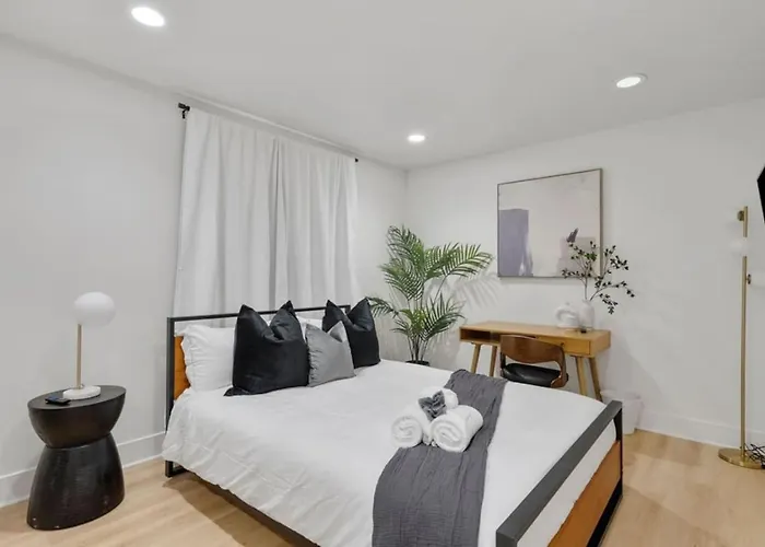 Die Villa bietet einen komfortablen Aufenthalt mit einer kompletten Küche, die mit einer Mikrowelle, einem Wasserkocher und einem Kühlschrank ausgestattet ist. Gäste können italienische Spezialitäten im Restaurant Delicious Pizza genießen, das etwa 7 Gehminuten von hier entfernt liegt. Die Villa in Los Angeles liegt nicht weit entfernt von der Bushaltestelle Adams & Dunsmuir und nicht weit entfernt von der Stadtbahnlinie Expo/La Brea.